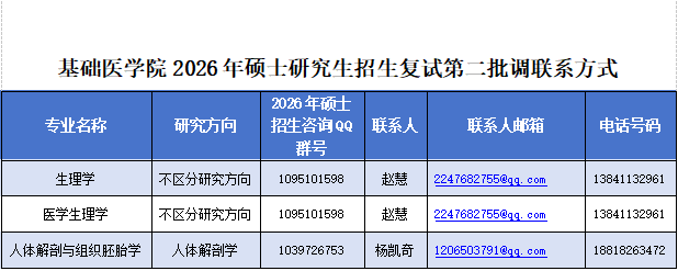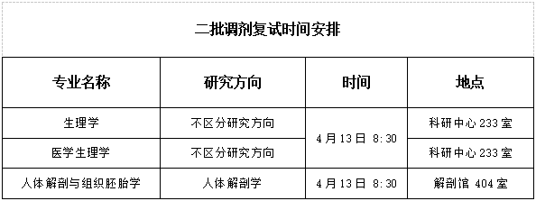 按照《教育部关于印发〈2026年全国硕士研究生招生工作管理规定〉的通知》(教学〔2025〕2号)、《大连医科大学2026年硕士研究生招生复试录取工作办法》《大连医科大学2026年硕士研究生招生考试第二批调剂工作公告》,结合我院第一批调剂考生拟录取情况,开展我院2026年硕士研究生招生第二批调剂工作。现将调剂工作相关事宜公告如下。