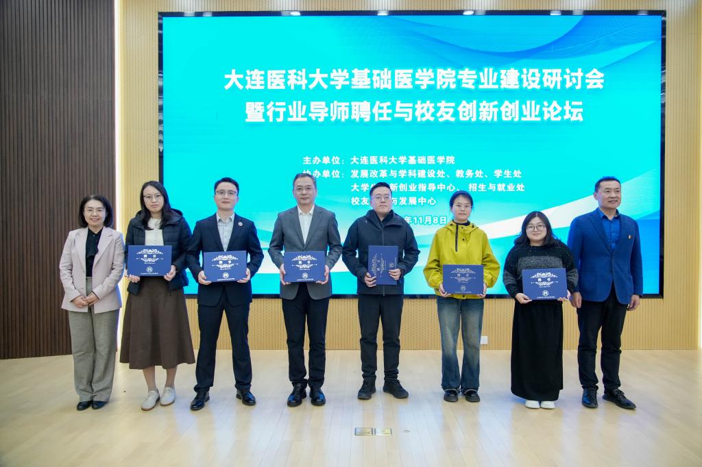下午,行业导师聘任仪式与校友创新创业论坛在科研中心楼学术报告厅举行,由基础医学院副院长张艳丽主持。会上,学院为来自东软集团、大连市友谊医院、百济神州等企业及医疗机构的行业导师颁发聘书,正式构建起校企协同育人的长效机制。